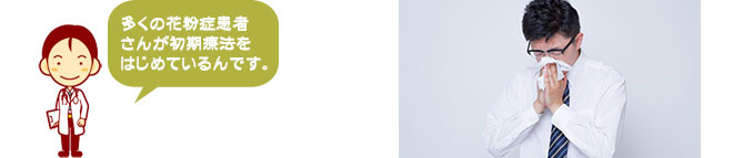 花粉症の治療には薬物療法や抗原特異的免疫療法、手術療法などがありますが、手軽な先手必勝には「初期療法」です。